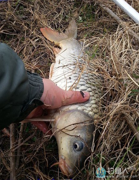 酷乐先前送来的抄网就在身后,只要一转身便能拿到手。可就在俺刚转身之际,突感手中的竿子传来猛烈的颤抖感。第一次看见,鲤鱼竟然会洗鳃,而且拼着最后一 点力气,一洗就洗了十几次的鳃,俺只能稍用力的提着竿子,让竿稍始终保持弯曲状,等着鲤鱼彻底放弃反抗。慢慢的,洗鳃的平率越来越慢,只到老老实实的横躺 水面俺才回身去拿抄网。