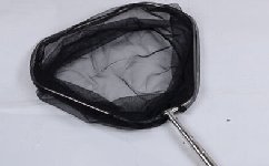 抄网也可以自己制作,将铁丝环穿到尼龙网上在装上把柄即可。尼龙网的大小可根据需要来选择,颜色不宜鲜亮,因为色彩太鲜明,对鱼会产生刺激作用,使鱼受惊吓,增加了抄鱼难度。除此以外,选择抄网还应牢记以下几点。