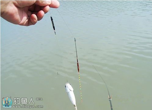 将浮漂升到水位深时的上太空豆位置,将钓组抛入钓点且微调浮漂使钓目(如5目)与水齐平,而后下调1目再次抛入水中看漂尾是否为4目,若是在往回升1目抛入 水中,看是否又回到了5目,若是则找底成功。于是,剪下双脑线单钩,换上完全相同的双脑线双钩,在上钩挂上精确找底橡皮泥,再度抛入钓点反复调整核定为5 目,则调漂、精确找底结束。此时双钩在水底状态应为:下钩躺底、上钩轻触底(上、下钩距必须在1.5至2个钩长之间)。