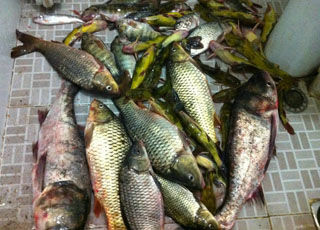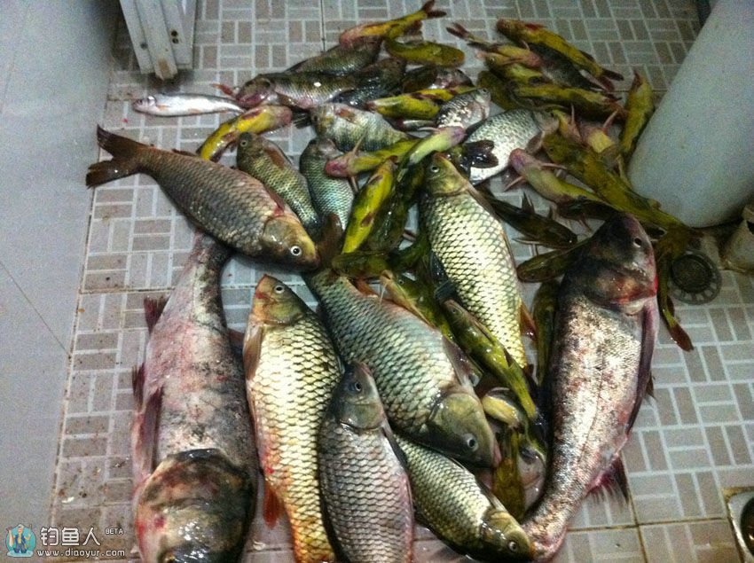 四人通宵小水库来钓鱼 斩鲢鳙黄颡大丰收