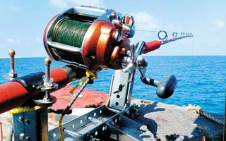 拖钓的钓竿与渔线轮选用往往是与钓线的承重规格紧密相连的。通常而言,20磅的拖钓套件可以钓取体型较小的一些鱼类,例如旗鱼、白枪鱼等,而130磅的拖钓套件可以用来征服那些海中的巨无霸,例如蓝鳍金枪鱼。