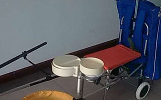 (3)关于车轮固定和后部加脚问题,还未考虑成熟。我已试坐、试背、试上下楼,本人体重83公斤,坐着很牢固,没问题。