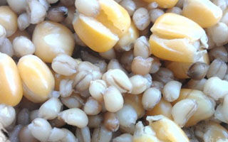 2、精细窝料的制作,就比较复杂和系统了。需要原料醪糟,玉米,麦子。大的口袋或有盖的桶。制作前,用高压锅把适量的麦子和玉米同时高压煮熟(5成熟就OK),等气压完全下去后,添加适量的醪糟进去,再高压上气2分钟后关闭,最后装入有盖的桶或大口袋中密封一天后备用。一般不要麦子煮到四处开花,刚刚开花为最佳状态。这个方式适合那些大面积的水域。聚鱼效果奇特。初次布窝适当的要多些。补窝则可以用原始状态下的干麦子和玉米等。