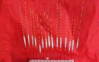 最近一段时间,我们这里的钓友推崇“枣核”漂及“牙签”漂。“枣核”漂,是那种漂身短,中间肚腹大而两头尖,形似枣核。漂脚长(10——12cm),漂尾更长(16——20cm)。“牙签”漂,是那种漂身稍长(10——12cm)而漂身直径小(3——4mm),漂脚也稍长(8——10cm),漂尾也长(14——17cm),形似牙签。
