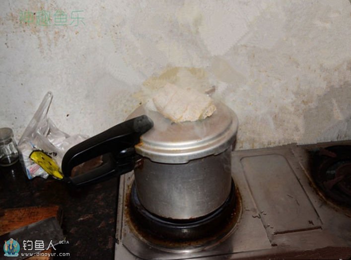 【步骤四】:把口袋扎好,上锅蒸,把干的一面朝下,湿的一面朝上,盖好锅盖蒸足20分钟【看旧饵量大小,大火蒸透,基本20分钟可以蒸透了】这样的目的是把旧饵水份蒸干也可以把旧饵消毒一遍省得日后酶变,经过大火蒸过,小鸡饲料的玉米香味和饵料的香味,爆炸窝料的酒香充分结合一起。