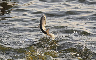 鲤鱼在索饵方面具有显著的周期变化,它比趋温和避光方面来的直接,抛开生理和季节等原因,单从垂钓这个角度来分析,一方面由它的饱食程度来决定,另一方面则由鱼的防御本能来左右。但是这两方面都可能是钓鱼人自个儿惹的祸。我们不妨想想近几年来,在春季作钓较大的湖库方面,鲤鱼刚开口时钓地好好的,但过几天就不行了,鲤鱼基本上停口,即便是有上钩的,除了口小口微外,大多是钩子在鱼口腔内挂得很浅,且多不是在正口上。什么原因?有人说是鲤鱼进入了生殖期内的厌食症阶段。但是鱼刚刚才吃了几天食啊!说它才步入生殖期之前的储备营养阶段还差不多。实际上,其中最重要的原因,就是钓鱼人窝子内不断堆积的窝食和竿食喂饱了鲤鱼。从解刨学上看:鲤鱼本身没有胃,食道管后端紧接前肠,除直肠外其他肠腺均不发达。也就是说:鲤鱼的肠道消化功能并不强。它的消化系统主要靠体内产生的消化酶来运行,而消化酶的生成又离不开高水温,温度越高产生的消化酶越多。因而,饱食下的鲤鱼白天就在窝点不远处的水表层之下。