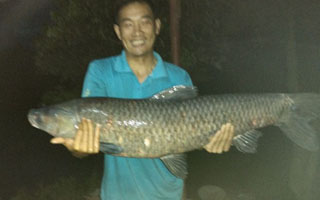 连绵细雨战黑坑 擒获26斤大青鱼