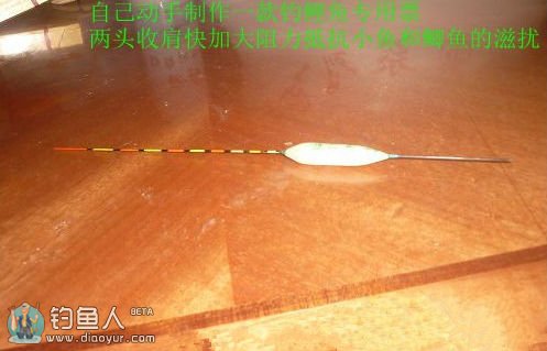 调漂。悬坠钓鲤鱼调漂,说白了就是台钓钓鲫鱼时钓组的放大钓组。台钓中大多使用调四钓二,调五钓三,还有调几钓几等各种调法。钓鲤鱼时就不必太讲究灵敏度了,调高一点要好些,钓目只要低于调目就行了。假如调十目那么十目以下都是你的钓目了。