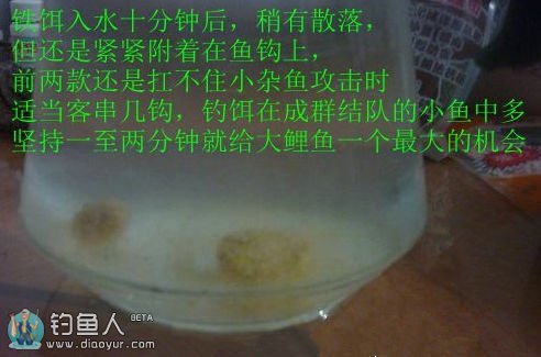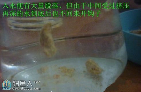 这种状态适合早春和晚秋水凉时使用。夏秋季不管到任何钓点,开局也是用这种状态。闹小鱼和鱼口特少时建议改变疙瘩饵的状态。