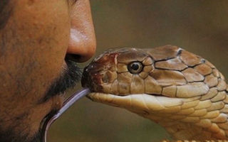 马来亚钓友Amjad Khan被当地人称为“蛇王子”,他最擅长表演与巨毒眼镜王蛇当众接吻的技艺。虽然这个27岁的男子的父亲(当地人称之为“蛇王”的艺人)在进行类似表演时被眼镜王蛇咬死,但他仍继续坚持演出。