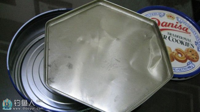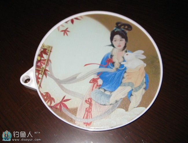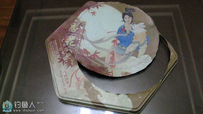 一般饼干盒子都是马口铁的材料,质地都比较薄的材质,成型之后发现有点软了,边上的缝隙也有点大了,索性二合一再做一片加上一层,经过精心周密的制作,保留了美丽的嫦娥奔月图,一件堪称完美的拉饵盘终于完工了。