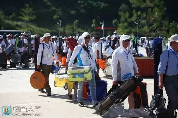 第二波走来的台钓方阵,他们背着钓椅包,斜挎着竿包,拎着鱼护包,拉着饵料包,挂着备件包,全副武装,眼花缭乱,不停抽搐地走了过来。