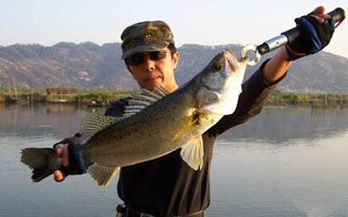 因为作钓水面宽广,路亚选手一般会通过搜索选定几个他们认为比较出鱼的点作为标点,并且在这些标点来回作钓,同时根据气温、气压、风向等调整作钓方式和地点,如开始作钓时天气闷热无风,到后面慢慢起风,这样的情况可以更换到风尾作钓,因为风尾含氧量较高,含氧量高的低氧小鱼比较多,鲈鱼也会聚集于此。其次晴天雨天作钓方式也不同,晴天尽可能的选择阴凉的地方作钓;而阴雨天则可以选择有树的岸边作钓,因为雨天容易使树上的虫子掉入水中成为鲈鱼的美餐。