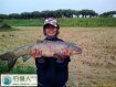 他收拾好东西我也开好饵了,下杆,(9根海杆都抛在不到7米宽的水面)。耐心等待铃铛作响。结果第一次饵到时间就换,铃铛响都没响过。这时,时间已是下午两点多了,第二趟饵下水,依然耐心等鱼上钩。第二趟饵铃铛也没响过。第三趟饵下去,没过几分钟,其中一根杆铃铛作响,但忽然停了下来,我抬头一看,只见那根杆的鱼线越来越松,我想肯定中鱼了,我跑过去一提,感觉像挂底了,基本拉不动,但我知道这是中大青的感觉,突然水底的鱼开始发力,拉得我往前走了几步,轮子吱吱作响,一下要去了10多米的线,我也不敢怠慢,赶紧往后退了好几步,趁鱼喘息的机会赶紧收线,不到10秒的时间大青基本给拖上水面了,只见水面的白条乱窜,但还没看到鱼有多大,但这鱼的力度非常的大。这时大青又忽然发力,轮子又吱吱作响,又要了好几米的线,还好我早有准备,这次不至于给它拖我往前走几步。大青做了这次冲击之后感觉它的力度变小了,我赶紧收线,终于看到大青的头露出水面了,有点失望,个头不大,当时估计是10到11斤这样子。而且有三个鱼钩分别钩在鱼嘴巴,这下我就不管那么多了,狂收线,把鱼硬拽到离岸边一米的位置,朋友已经准备好抄网抄它了,谁知鱼刚碰到抄网又再次发力作最后一次挣扎,往左边狂窜,横扫旁边三支海竿,冲到岸边搁浅了。我朋友眼疾手快,用抄网扑过去。。。。。。我当时就说:别!!这样扑法,等下鱼钩会钩到抄网。。。。。。我话还没诶说完他已经扑下去了,还不幸言中,鱼钩真的挂抄网了,鱼抄不进去。还好这时的鱼已经没什么力量再去做反抗了,还好另外一个钓友够猛,他抢过抄网,按住鱼,然后用手直接把鱼按进抄网。到此时,一个悬挂的心终于放下来了。(用时不到五分钟)平生第一次钓到青鱼,也是第一次钓到那么大的,心里有说不出的开心与激动。当我捧起鱼正在拍照的时候其中一个铃铛响的很凶猛,估计是大物,我赶紧把鱼扔一旁,赶紧去提杆,鱼个头不小,估计是鲤鱼,大概5到6斤这样子,但因为之前起那条青鱼把几根杆都混在一起打架了,鱼线给缠绕在一起,收不了线,最后给跑了。心里想,跑就跑吧,我那还有条大青呢。至此12月9日就基本完毕了,期间上了鲮鱼、鳊鱼等,但都不大。