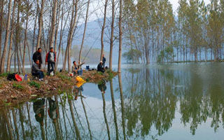 钓行之一: 十月下旬某天,天气阴,气温近20度,我与一行五人前往合川区某水库(每人每天收费30元),8点左右到库边一看,已到位数十人,所谓的优秀位置一个不剩,只好草草在库尾寻一浅水钓位,谷子打窝后等到……近一小时过去了,不见鲤草踪迹。改挂蚯蚓,连上几个鲫鱼,此时一看对面邹老师,双飞鲫鱼拉得河翻水翻的,连发,连发……