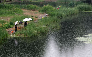 钓鱼不是只有晴天才能钓鱼,雨天也能钓鱼。春雨、夏雨、秋雨中钓鱼,只是钓法时有区别的(冬雨太冷,不宜下竿)。春雨有大雨小雨之分,大鱼落在水面,响声较大,鱼会停止进食,不好钓鱼。而春雨绵绵的毛毛细雨之中是比较好钓鱼的,温度在20度左右的小雨中,可以用子竿钓边,用长竿钓滩,可以打窝钓,也可以寡饵钓。应选择酒米、豆粉之类做窝饵,用红蚯蚓做钓饵。