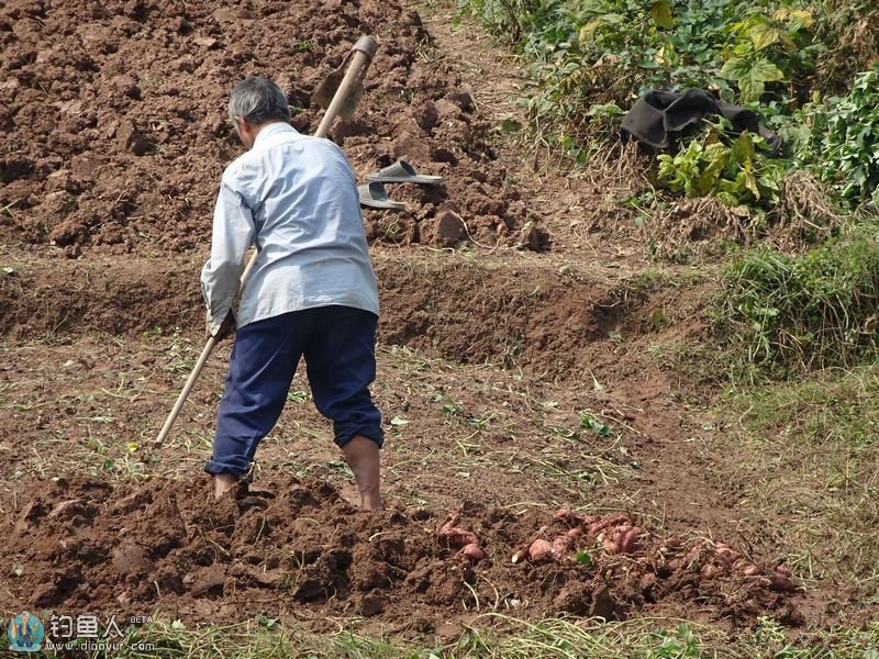 地里的老农辛苦地忙碌着。