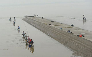 更重要的一点是江钓需要坚持不懈蹲守,并非每个潮汛期间都是能有收获的,因此需要连续不断地坚守钓点。一旦这个涌潮周期里出鱼,即说明接下来的几天 之内都有可能接连出鱼,江钓人嗅觉灵敏,会纷纷出动,江百里海塘围个密不透风也是经常的事儿。尤其是夏季,每到傍晚时分,各路江钓大军占据有利位置,部分 昼夜地蹲守,确实能取得不俗的收获。