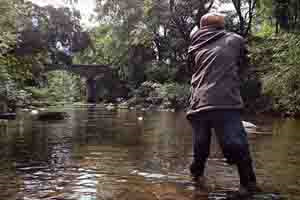 飞流水则是利用急流挟裹着毛钩进入水流的底层(通常要用到蛹形毛钩),然后轻拽回线,让拟饵脱离急流进入其边缘,这般操纵之下,充满浮力的毛钩会 扭捏着自水底上升,摹拟着石蚕脱逃水底的那一刻。