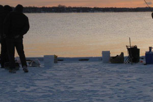 冬季野钓要有耐心。选好钓点,撒下适量的诱饵后,一般需要1~2个小时,才会有鱼进窝咬饵。而且一个窝试钓要40分钟左右。但如果在一个窝钓了2~3个小时,仍然无鱼咬饵,就要转移到其他窝子了。