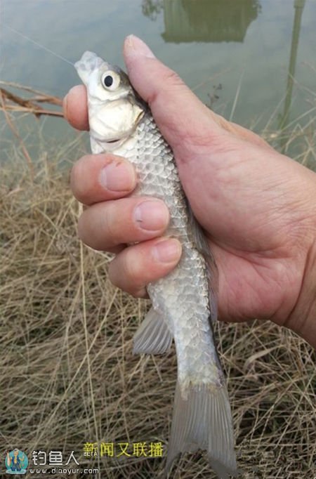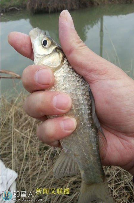 打窝后十几分钟就见着了鱼星,轻轻摆杆下水,星漂慢慢一送,抬杆中鱼,一条十分苗条的鲫鱼,看这体型就知道水中缺少吃的。