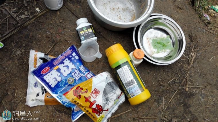 天气寒冷,有必要把饵也开得走心一点。百家鲫50%+纯土鲮2号、野战蓝鲫50%,拉丝粉20%,蛋奶半瓶盖,这回特别加了一瓶盖钓无缺竞技诱开饵,与窝料里的植物香窝相呼应,追求窝饵味型一致。