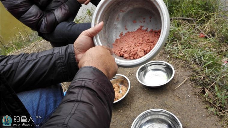 没抛几杆,又来了位老兄,当然这回不是老荣了。老荣可能还在猫冬吧。这回来的这位老兄在对面农庄有个酒局,显然也是个瘾君子来的,看到钓鱼就挪不开脚了。老兄看我伸出食指与中指尖,慢条斯理地往钩上挂饵,微熏着开起了腔:这个饵,应该能钓到鱼哈?答日刚来,谁知道呢。老兄又热情地自我介绍起来了,原来是专业玩堵塘打比赛的,各种味型浓淡的专业知识开始“无私分享”起来,我低住头只管不停抛饵诱鱼,他只好一边泛滥着他的堵塘打比赛的知识,一边每每讲解一个理论之后便向W投去“你明白了吧”的眼神:“系唔系?”W顶多算抄鱼新手,同他他分享用饵这些高深莫测的专业知识,W回来说他当时点头都点累了。老兄一边聊着他的鱼经一边端起我的饵锅,捏起一小团“南北鲫哈?”“南北鲮就有一些”我如实回答。老兄两个手指细细的搓了开来。(哈哈,据说老鸟们就用这一招,细细搓细细搓,根据最后残留的味型能判断你所用的小药。)老兄仔细闻了半天,终于又开腔了,这回他比较保守“恩,这个蛮香的哈”