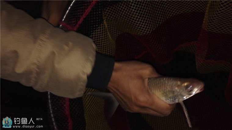 饵料是装逼成功,美中不足的是水里的“托”们没有及时来撑一下场面。寒风呼啸的,居然派了群小非非过来,尼玛不是说这天气小非会冻僵的吗?老兄倒是一点不介意,对于我那只连这么小的非的吃口也能体现出清晰顿口的漂感起了兴趣来,非要我提出水面来给他看看品牌。