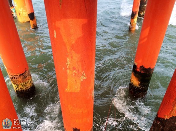 在夜色的掩护下,我们极其顺利的摸黑爬了上去,如同夜袭的战士,令人感觉无比的刺激。虎子飞快的抢占了一个有利的位置,立马便组装好钓具下手钓起来。我则不慌不忙,因为我知道这个季节没有太阳几乎是钓不到鱼的。果然,虎子一会儿的功夫便连续挂去了N付鱼钩,暴躁的跳着脚咒骂起来。我说,这个台子下面很脏(指水下礁盘上废弃的渔网及杂物多),你还是用独钩,不要用双钩。