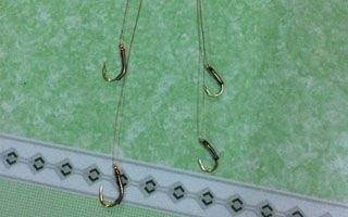 7.因为我还有两套海竿,经常用于钓越南的大鲳鱼或大型泰国鲶,所以就举一反三,用圆珠笔内的弹簧自己也制作了几幅海竿用弹簧钩一样的效果---精准敏感,饵料不容易分散。