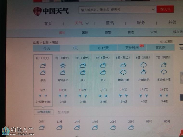 参考当天日照天气预报是晴转多云,风向是西南风、风力是三到四级、温度在7—2℃温度是否适合垂钓不详!