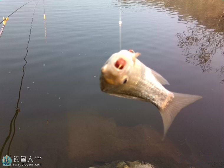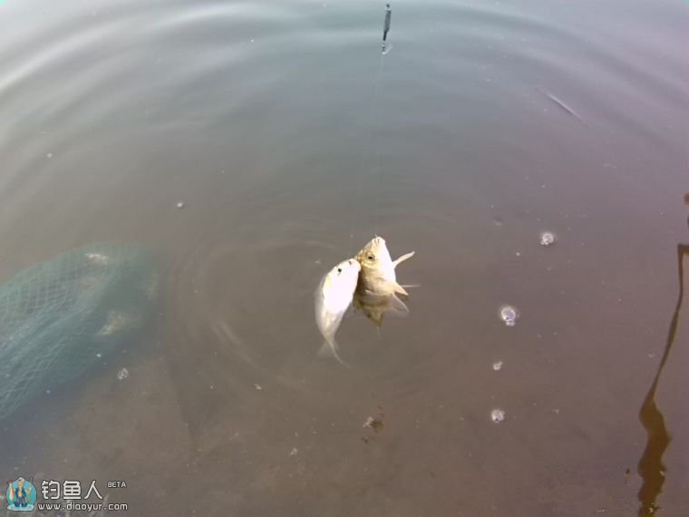 瞧!钓竿成大弓心想又中大物啦!小心翼翼施展遛鱼技巧不时还泛起鱼花来!可惜没有两个回合它露出真面目双尾过三两的板鲫