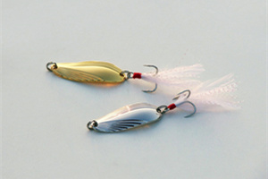 虽说亮片的结构简单,但是不同形状的亮片在水中表现出来的泳姿却大不相同:有左右摇摆的,有旋转的,还有上下翻滚的。再加上亮片本身具 有强烈的反光效果,对翘嘴的刺激和诱惑会更加强烈。