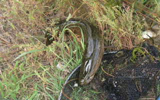 使用海竿串钩钓黑鱼,主要是采用固定钓点,等鱼上钩的方法。黑鱼个体大,性情凶猛,挣扎力强,耐力持久。所以,要选择3米左右的海竿,线要用3-5号的优质尼龙线,轮要用能容纳100米左右钓线的旋压式绕线轮。为了经济实用,钓黑鱼的串钩自制为好。