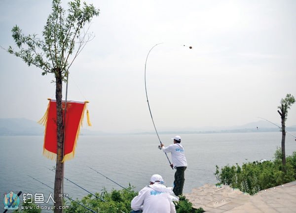 b.海竿抛投到深远水域垂钓