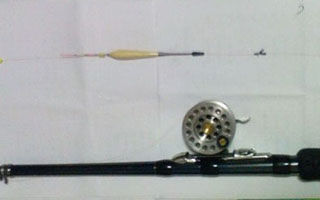 个人认为新手学冰钓的钓组应以传统钓法为主,一是简单易行,二是对于水下有草(如官厅水库)或闹小鱼公鱼的(如今年的云州水库、北务鱼塘)较为适合。近年来传统钓加二楼的钓组也很受钓友的青睐,特别是冰快开化时鱼上浮活动尤为见效。传统钓组上鱼多为送漂,更具刺激性。下面是我的钓组手机拍照图,我的原则是易捆绑易操作,不易缠绕,抗大鱼拉。