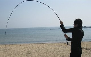 2、矶钓竿:它既可当着手竿钓,也可当作抛竿用,长度有4.5~6.3米。通常在小水面上施钓时,可在竿上装上渔线轮,碰到大鱼引遛自如,不易逃脱;在大水面钓时,可抛得远钓得大。其竿梢的灵敏度比海竿要高,鱼讯易于识别,竿长还利于遛鱼。