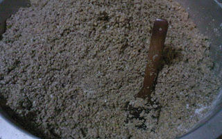 取麦麸若干,将小麦煮熟,碎玉米用电饭锅蒸熟,老鬼鲤窝四者混为一体搅拌,待温度降至30度左右时加入老鬼氨基酸,酵母(用温水化开),米酒搅拌均匀,发酵2-3天即可。使用时可以将老鬼螺鲤干洒进窝料,效果会更好。此窝料加点面粉就可以作为海竿炸弹钩饵料(调制的要干一些)。