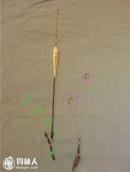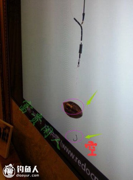 特别注意:在此再次提醒大家啊,下钩一定要空钩,如果你下钩也上饵料的话,雾化带就在下钩的下面了,这样鱼“喝食”的距离就加大了,垂钓的第一漂讯极容易错过。