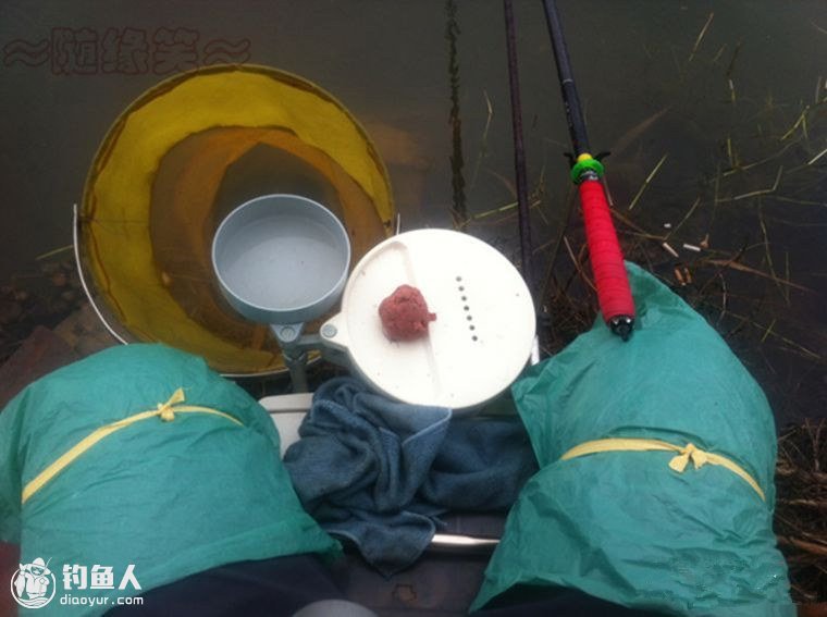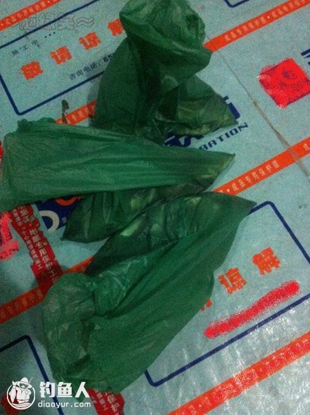 长时间的挂饵抛杆、扬杆飞鱼和“眼不离漂,手不离杆”的高度紧张状态下,窝里的鱼口已有些放慢了节奏,赶紧搓大饵补窝并给自己放松一下,也是这个时候才感觉到自己的脚趾已是冰凉,两个裤腿已被刚才的斜风细雨给淋湿了,潮湿的阵风吹来顿感小腿有些凉意,翻遍钓箱内没有御寒的物件,只有几个塑料袋,都说办法总比困难多,把它们绑腿上了。