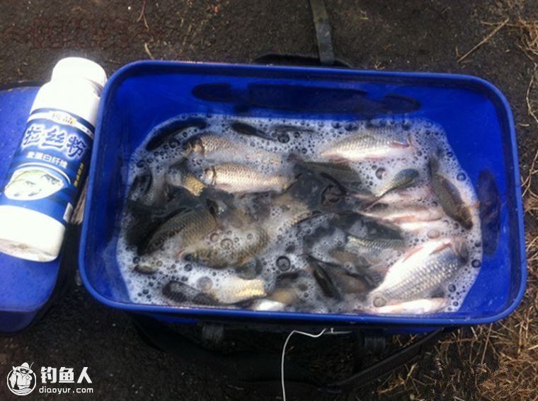 下杆不到半小时,桶里的鱼儿数量已在不断的增加。由于前几天的饵料雾化相对好些,苍老师很早就闹窝了。这次我是特意加多了大比重的饵料和加量的拉丝粉,不同程度上也影响了鱼儿的吞食入口性。从鱼桶里的红色残留可以看出,这把饵的拉丝粉含量过多了。