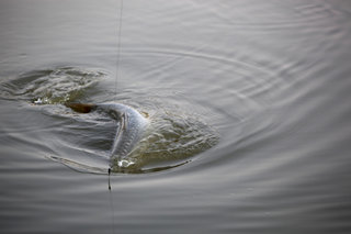 拖钓时要让鱼漂始终在水面行进,若拖到水浅处,可将鱼漂抬起一截,钓中下层和中上层鱼可不必用漂,全凭手感判断鱼是否吃钩。无论钓哪个泳层的鱼,都要如上所说,不能一味地拖,要拖拖停停,让鱼在动态中追饵,在静态中吃钩。