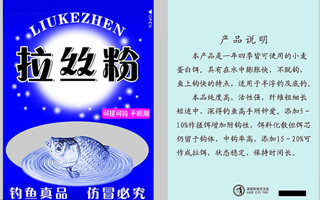 按拉丝粉的目数去调整鱼饵,你会感觉到得心应手,如虎添翼。做为一名竞技钓手一定要在饵料的细节上多做文章,往往在比赛中,第一名和第二名只是差一尾鱼而已,取最后一名和关在门外的往往也是零点几分的界限。拉丝粉在饵料中起到了决定饵料状态的作用,有时也起到决定胜败的作用,一定要正确合理使用拉丝粉。