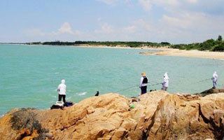 到了枯潮之际,一是沿着从岸伸向大海远处的相连结的岩礁,直达潮水退落的最低点,用手竿寻深、寻草、寻礁缝钓;二是向海的远处延伸,直奔海面上呈现条状白带的海流流经的船道和距离岸较近的苔筏养殖区。这些区域在枯潮期是鱼退去的必经之处。加之这一带水深,养殖区的养殖筏上附着泥沙和小生物多,是相对的富饵区,尤其是晚夏时,天气过于炎热,鱼儿有开始由浅水区游向深水区,此时到此垂钓是不会让你空手而归的。