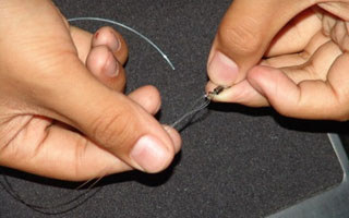 选好钓线后就是绑钩,有些钓友在绑钩时,生怕钩线缠绕不紧,在缠线时用大力,使子线在抽动时由于延伸而弯曲受伤,也是引起子线缠绕的原因。
