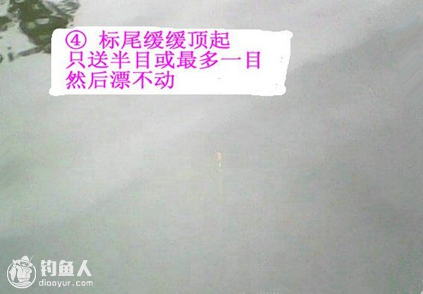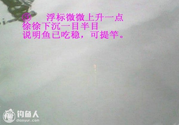 浮标微微颤动后,略沉半目至一目,标动即停止。这时提竿时机为浮标刚刚下沉,其过程很短,垂钓者若不是精力高度集中,稍有迟缓,即可痛失良机。