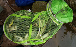 鱼护的直径 是40厘米的,鱼儿装了一格有多。最后选了一些个体在一斤左右的装入我的鱼桶中,剩下的给了同去的钓友,他在乡下有个鱼塘,这鱼正好合适,明年又有自留地钓鱼了。