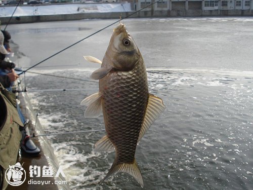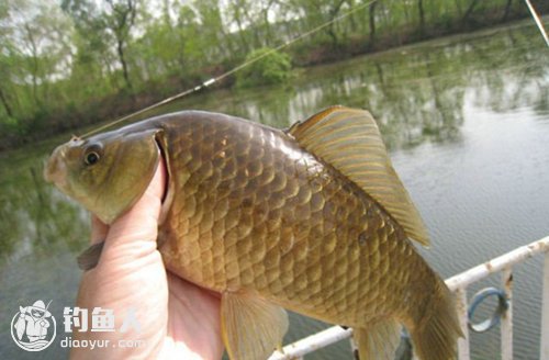 3.在钓中鲫鱼后,应把鱼稍微斜拉出窝,手臂再向上举把鱼拉出水面,这样可减少惊吓到窝中留鱼。