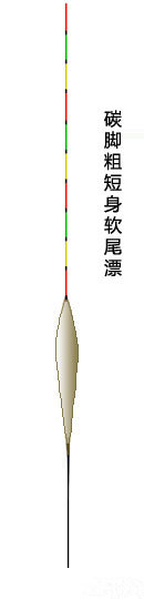 4.漂宜灵,选小一点的,比如用“碳脚粗短身软尾漂”(立式台钓浮漂)。