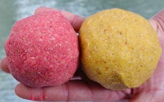 2、夏天用饵: 80%颗粒饲料泡开,20%南极虾粉,混合加香油拌好做成面饵。